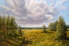Картина Владимира Абаимова «Бесконечный день» — классический русский пейзаж, воспевающий красоту родной природы. Художник мастерски передает ощущение простора, где уходящее за горизонт поле встречается с высоким облачным небом.