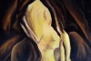 Картина Владимира Абаимова «Тишина отшельника» — это глубокая психологическая и метафизическая работа. На полотне мы видим не просто образ, а состояние: абстрактная, почти бесплотная фигура, освещённая мягким внутренним светом, словно рождается из густой, обволакивающей тьмы.