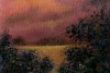 The composition is built on contrast: dark, almost black silhouettes of bushes and trees in the foreground frame a light field, as if it has absorbed the last rays of the setting sun. The sky here is the main character: the gradations of deep pink, lilac, and purple create a feeling of dramatic yet serene silence. Abaimov uses a soft textured technique that makes the image almost tangible. This landscape conveys the warmth of the fading day and the gentle sadness inherent to the evening. It is a work about the moment of the world’s «pause», about a special beauty that can only be seen by stopping and listening to the breath of nature at twilight.