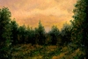 The painting by Vladimir Abaimov «Облачно» is an intimate landscape conveying the state of nature during a leisurely evening fading. The artist skillfully captures the changeable character of the sky: soft, peachy-golden tones of the clouds create a cozy glow that seems to spread over the dark strip of forest.