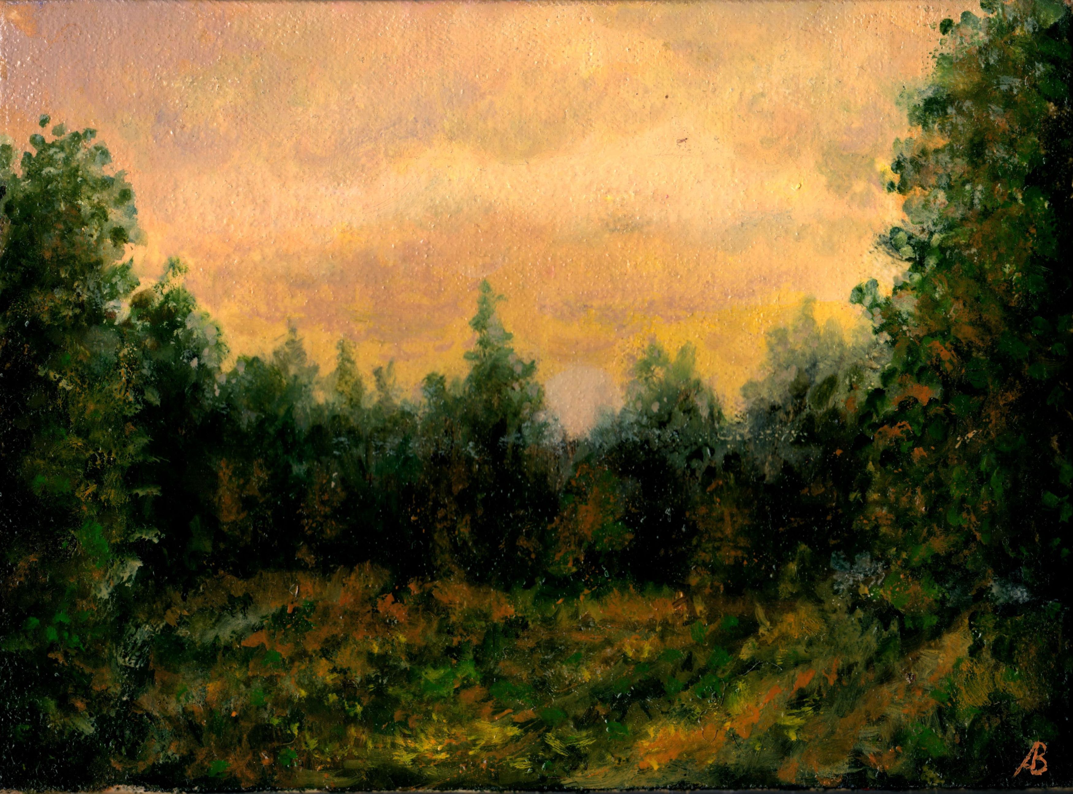 The lower part of the canvas, immersed in dense, almost tangible greenery and twilight, serves as a calm foundation for the celestial spectacle. Abaimov does not focus on sharp details, preferring to work with mood and color. The painting is filled with silence and a premonition of the approaching night, when the world around freezes. In this «cloudy» landscape, there is a deep lyricism: it is a moment of brief respite when the hustle of the day recedes, leaving room only for contemplation of the beauty hidden in the simplicity of the departing day. The work gives a sense of peace, inviting the viewer to share with the author this quiet, contemplative moment alone with nature.