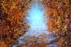The painting by Vladimir Abaimov «At the Entrance» is a picturesque metaphor of transition, inviting the viewer into a space where autumn meets mystery. The artist creates a kind of corridor from dense, ochre-golden tree crowns, whose branches converge like the vaults of an ancient temple. In the center of the composition, a portal brightly shines, flooded with a cold, almost otherworldly blue light, sharply contrasting with the warm tones of the foliage.