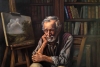 Взгляд старика, устремленный куда-то в сторону, полон меланхолии и мудрости. Он сидит, опершись на руку, окруженный молчаливыми свидетелями его жизни — рядами книг на полках и мольбертом. На мольберте стоит почти законченный пейзаж, который кажется светлым лучом в этом темном, камерном пространстве. Эта картина — не просто портрет мастера; это аллегория творческого пути, где великие замыслы сталкиваются с физическим истощением. Абаимов с уважением и теплотой фиксирует момент, когда вдохновение сменяется усталым созерцанием, а накопленные знания (книги) и созданные работы (пейзаж) становятся единственными собеседниками.
