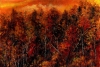Vladimir Abaimov's painting «Under the Yellow Sky» is an expressionist canvas where nature appears in its most dramatic, fiery form. The artist masterfully captures the moment when autumn reaches its peak: the forest transforms into a dense, multilayered flame, and the sky above it blazes with rich yellow and orange tones.