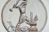 Четвёртая работа из нумизматической серии - монета с изображением молотобойца. Полтинник, который есть у каждого коллекционера. Первые Советские серебрянные деньги чеканились по образцу царских, тот же диаметр, тот же металл. У меня такая монета была ещё в юношестве, возможно её захотелось написать как портрет старого друга.