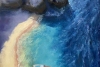 The main focus of the painting is the water. In the center of the bay, the water is crystal clear and transparent, colored in beautiful turquoise and aquamarine shades through which the bottom is visible. Further from the shore, the water becomes deeper and darker, transitioning into rich ultramarine and dark blue tones. The artist masterfully conveys the movement of the water using thick relief brushstrokes that create ripples and waves.