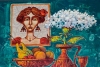 A warm still life with a portrait of a blooming girl. White flowers and fruits are symbols of youth, brightness, and beauty. They emphasize that everything is blooming and smelling here and now. She's a little sad, but everything will be fine.