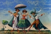 «Двое под зонтом» Канского — это не просто изображение трёх фигур, а яркий театральный этюд о человеческих отношениях, музыке и красоте момента. Картина излучает живость, романтичность и юмор, приглашая зрителя стать частью этой изящной, почти танцевальной сцены.