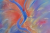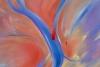 Эта абстрактная картина напоминает переплетение в танце двух разных цветовых энергий: оранжево-красной и сине-фиолетовой, как энергия инь-ян. В результате этого сплетения рождается нечто новое, оригинальное и очень мощное.