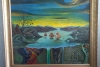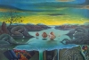 Картина Владимира Кучинского «Worshiping the Pearl» представляет собой сложную и многогранную сюрреалистическую композицию, переплетающую мифологические, религиозные и философские мотивы. Художник использует богатую, но приглушённую цветовую палитру и детализированную манеру письма, чтобы создать атмосферу тайны, медитативности и поиска высшего смысла. Это не просто изображение поклонения, а визуальное воплощение размышлений о ценности духовности, о связи человека с природой и стремлении к гармонии с вселенной.