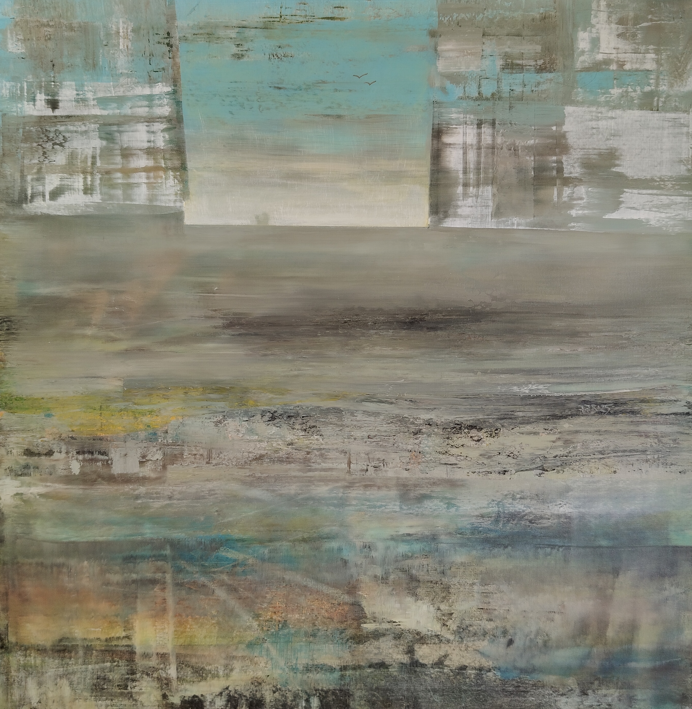 Художница предлагает зрителю совершить путешествие внутрь себя: «Если вслушаться в тишину, можно услышать голос своей души». Работа наполнена ощущением простора, где горизонтальные линии и мягкие цветовые переходы от землистых оттенков к небесно-голубым создают эффект замедленного времени. Здесь каждый слой краски — это отголосок мысли, а каждый мазок — шаг к истинному «я». Картина призывает остановиться в суете будней, погрузиться в тишину и обрести гармонию, столь необходимую для единения с собственным духом. Это не просто визуальный объект, а пространство для созерцания.