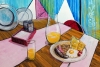 Картина Ильгиза Муртазина «Английский завтрак» — радостный гимн утру, написанный в характерной для художника яркой, почти фовистской манере. В этой работе привычный натюрморт превращается в праздник цвета, где каждое пятно краски наполнено светом и энергией.