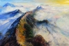 Картина Ильгиза Муртазина «Дом спящих драконов» — эпическое полотно, погружающее зрителя в мир величественных гор, окутанных мистическим туманом. Работа передает ощущение высоты и нетронутой мощи природы.