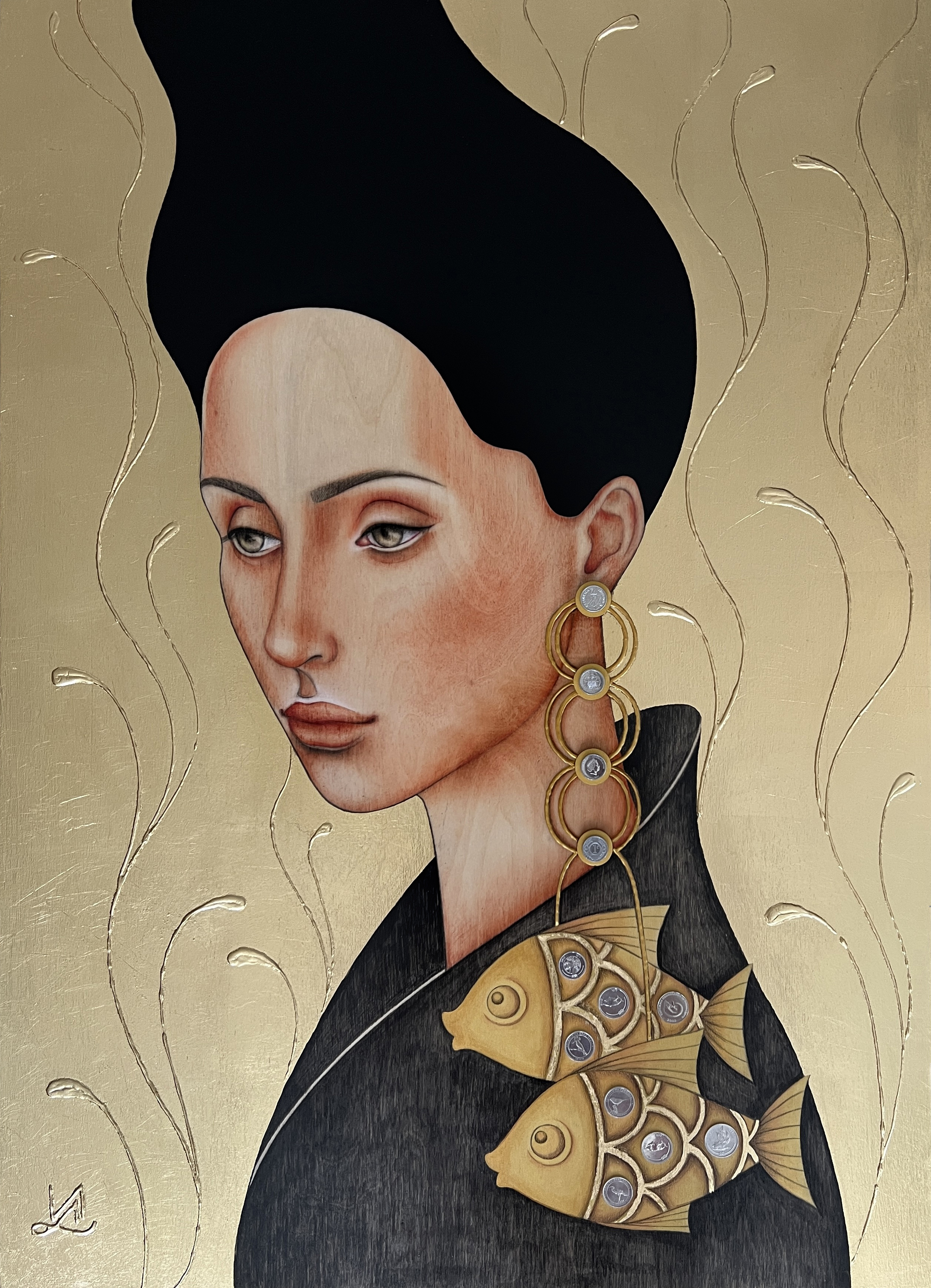 Монеты в моих картинах — не просто украшения. Это обереги. Символы сбережения, силы, достатка, защиты. Они вплетены в портреты так же, как в древности нашивались на головные уборы и одежду: не только ради красоты, но и ради силы. В каждой героине — голос прошлого и дыхание настоящего. Их образы — это художественный диалог между традицией и личным видением, между архетипом и современностью.