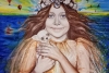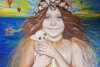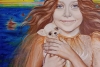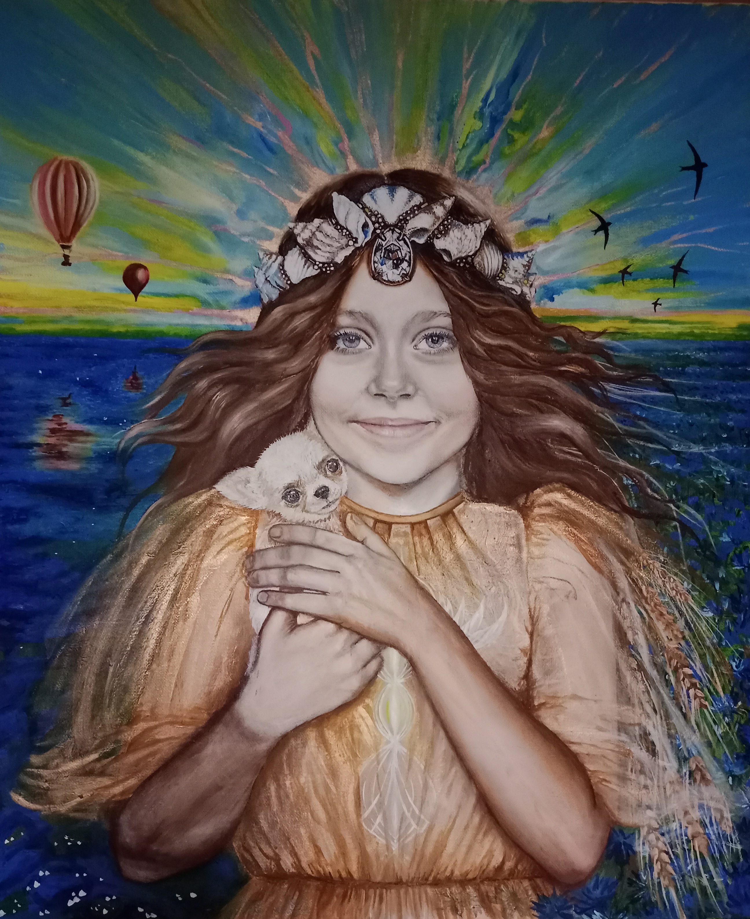 Детский многомерный портрет. Создан в уникальной многослойной технике. Сияние солнца детского сердца. Глаза излучают тепло, гармонию и спокойную музыку души. Море васильков с одной стороны плавно превращается в морские волны с другой. Ласточки - олицетворение скорости, динамики и свободы. Девочка как неотъемлемая часть Целого Мира.
