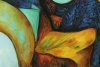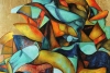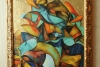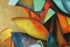 The composition is built on fragmentation: there are no familiar objects here, only an interweaving of color segments. Turquoise, deep orange, and ochre tones form a complex structure reminiscent at once of precious crystals and exotic plants in the process of mutation. Clear contours give the work architectural rigor, while the rich palette makes it emotional and «alive».