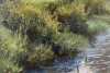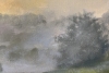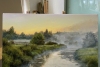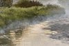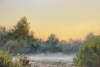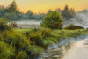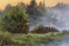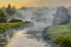Картина летний пейзаж "Туман над речкой стелется" написана масляными красками на холсте, натянутом на подрамник,