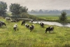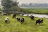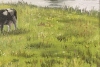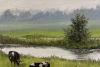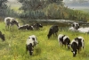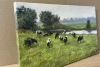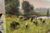 На зеленом лугу пасутся коровы. Очень приятная для взгляда картина.