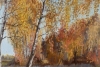 Большая картина с золотой осенью "Осенние березки" написана масляными красками на холсте, натянутом на подрамник.