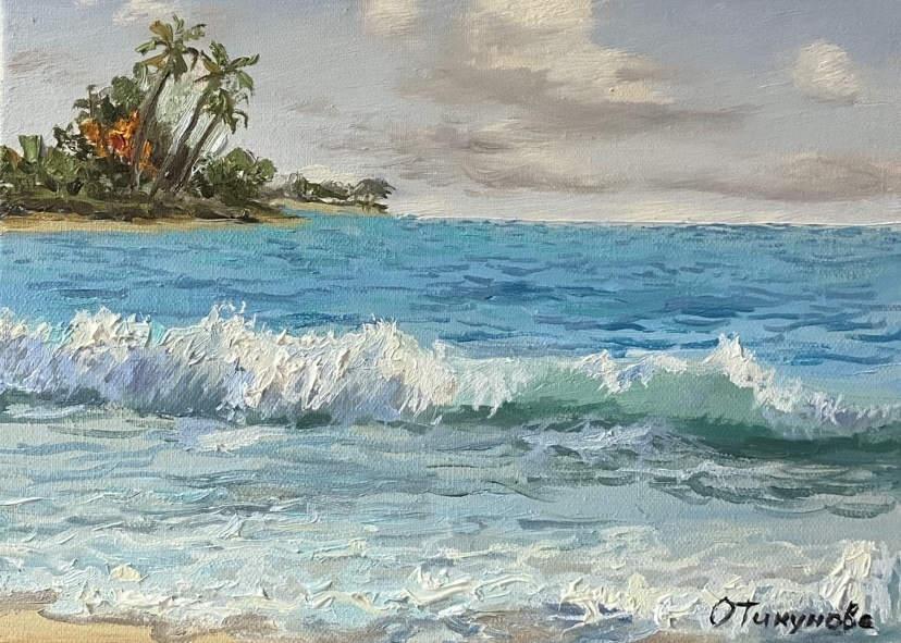 Маленькая картина с морским пейзажем может стать отличным подарком по случаю.