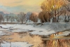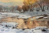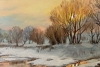 Картина зимний пейзаж "Теплая зима" написана масляными красками на холсте, натянутом на подрамник.
