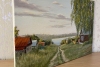 Эта оригинальная работа «A village on the river bank» была создана современной российской художницей Ольгой Тикуновой и доступна для покупки в интернете.