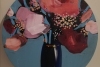 В центре внимания – букет крупных, стилизованных цветов в розовых и бордовых тонах. Лепестки, написанные широкими, уверенными мазками, словно светятся изнутри, передавая ощущение жизни и энергии. При этом форма и узнаваемость букета сохранены.