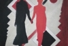 Картина Сергея Боголюбова “Красная дева” представляет собой смелое, графичное произведение, выполненное в стилистике, отсылающей к авангарду и супрематизму, где форма и цвет играют ключевую роль в передаче идеи.