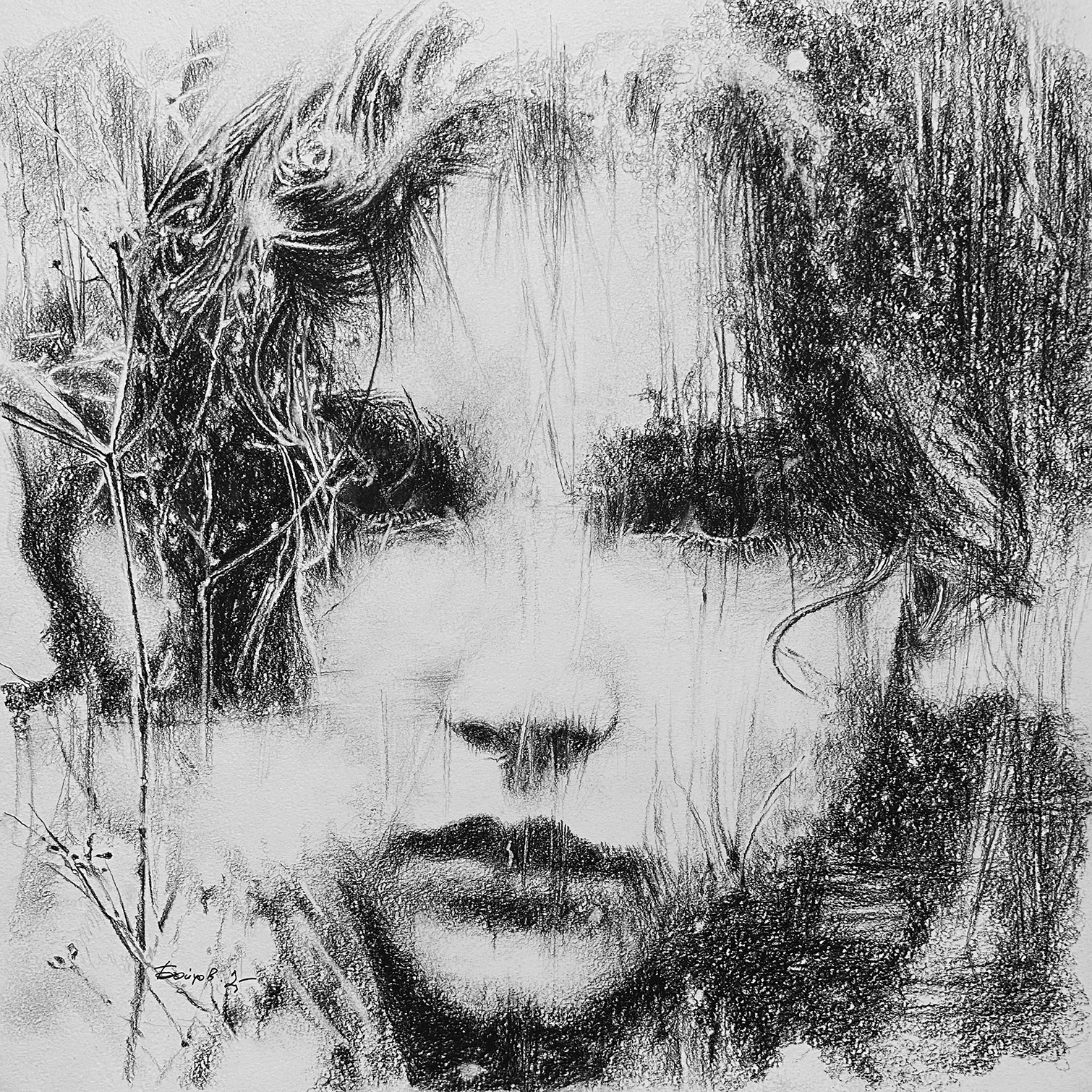 Уголь на бумаге. Работа подписана автором.
