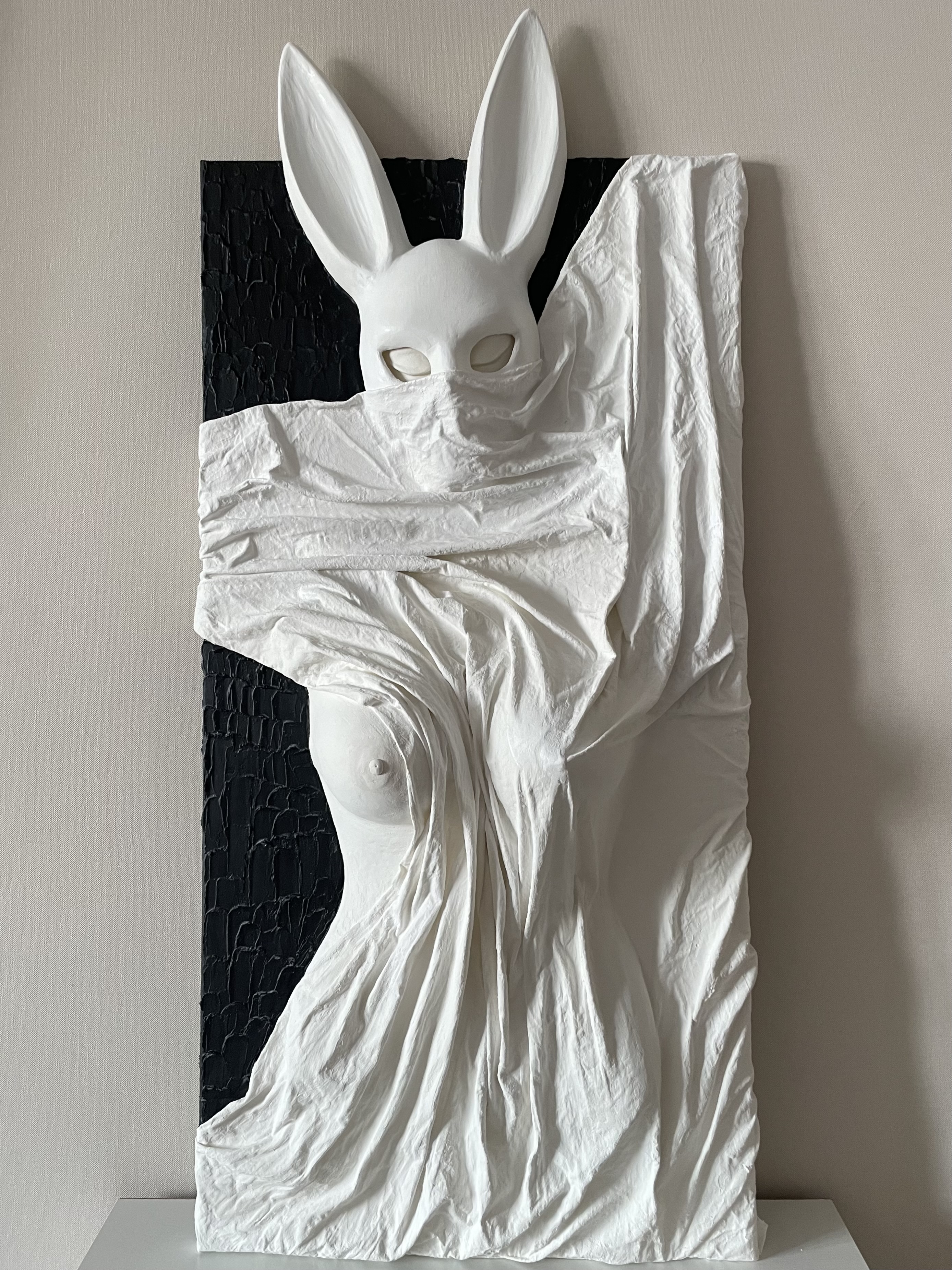 Материал: холст на порамнике, текстурная паста, гипс, ткань, акриловые краски, акриловый лак.