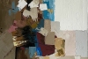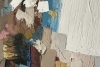 Картина выполнена в стиле абстракции с акцентом на текстуры и многослойность. В композиции преобладают землистые и нейтральные оттенки — коричневый, бежевый, серый — гармонично переплетающиеся с глубоким синим и винно-красным. Белые и золотые мазки придают работе ощущение света и движения. Центральная часть картины кажется хаотичной и насыщенной, словно в ней сосредоточен некий эмоциональный взрыв, в то время как края постепенно растворяются в спокойствии и пустоте.