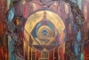 Круг в середине картины - солнце, инопланетный корабль, чей-то иноземный дом - это уже как вам подскажет фантазия. Для меня - это место, где зарождается жизнь, откуда льются потоки мерцающего, теплого света. И становится так тепло, спокойно, как у матери в животе.