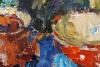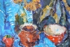 Перед нами предстает натюрморт, выполненный в характерной для Федора Конева импрессионистской манере. Однако, в отличие от его более лиричных пейзажей и цветочных натюрмортов, эта работа отличается более сдержанной цветовой гаммой и, возможно, даже некоторым налетом брутальности. Это натюрморт, который привлекает внимание своей необычностью и заставляет задуматься.