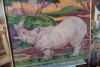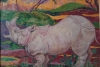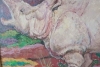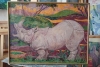 The song of a lonely rhinoceros at sunset, the color of mango. What is his song about? Is it about lost love? Or maybe he is not alone at all, and his girlfriend is somewhere nearby. And the song is for her. Everyone can interpret this painting according to their own mood.)