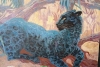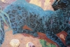 На картине изображена величественная черная пантера, лежащая на ветке дерева. Ее тело вытянуто, а взгляд устремлен вдаль, что придает ей ощущение силы и грации. Пантера выполнена в насыщенных синих и черных тонах, что создает эффект загадочности и мистики.