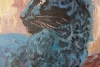 The painting depicts a majestic black panther lying on a tree branch. Her body is elongated and her gaze is fixed into the distance, giving her a sense of strength and grace. The panther is made in rich blues and blacks, which creates the effect of mystery and mysticism.