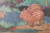 Картина Ирины Александровны Москалевой «Кабанчики» (2006) изображает семейную сцену в лесу. В центре композиции — крупный кабан, окружённый своими поросятами. Художник использует насыщенные и тёплые цвета, чтобы передать атмосферу природы. Листья деревьев окрашены в зелёные, жёлтые и розовые оттенки, создавая ощущение осеннего уюта.