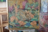 Irina Alexandrovna Moskaleva's painting "Boars" (2006) depicts a family scene in the forest. In the center of the composition is a large wild boar surrounded by its piglets. The artist uses rich and warm colors to convey the atmosphere of nature. The leaves of the trees are painted in green, yellow and pink shades, creating a feeling of autumn comfort.