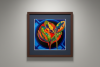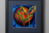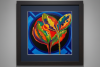 «The Code» — это яркая абстрактная картина с цветочными мотивами, сочетающая органические формы с геометрической точностью. Композиция включает стилизованные цветы, выполненные в психоделической палитре — ярко-оранжевый, лаймово-зелёный, глубокий фиолетовый и золотисто-жёлтый — на фоне драматичного чёрного цвета, обрамлённого концентрическими синими кругами, которые вызывают ассоциации с космическим порядком и бесконечным пространством.