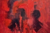 The title of the painting reflects the literal process of its creation. First, a red substrate was applied, after it had dried, the central part was worked out in dark tones, and then dense pasty layers of expressive red tones were applied, partially absorbing the dark space. The picture was created to the accompaniment and visualizes compositions in the style of classic heavy metal rock, with its power and passion.