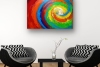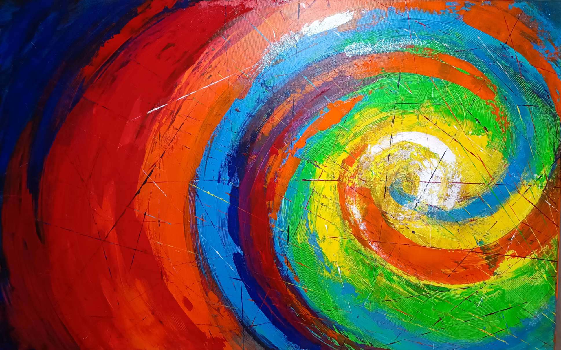 Абстрактная работа, эмоциональные корни которой передаются через спиральный мотив, предлагает визуальное воплощение радости, энергии и торжества жизни. Яркое переплетение желтого, красного, зеленого и синего цветов рисует картину эйфории, гнева и захватывающего вихря эмоций. Эта абстракция представляет собой путешествие от сущности к обширному внешнему миру, символизируя постоянное движение и поток чувств. Каждый мазок и выбор цвета в этой работе способствует общему ощущению динамики, превращая холст в грандиозное зрелище неукротимых эмоций, энергии и безграничной радости.
