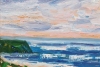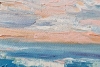Над морской гладью раскинулось небо, написанное в нежных пастельных тонах. Голубые, розовые и белые оттенки облаков создают ощущение лёгкости и воздушности. Мазки здесь более мягкие и размытые, что подчёркивает плавность неба и его единение с морем. На горизонте можно уловить намёк на далёкий берег или скалы, написанные в приглушённых сине-зелёных тонах, что придаёт картине глубину.