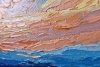 Небо занимает центральное место в композиции. София изображает его как бурлящий океан цвета, в котором преобладают оттенки оранжевого, розового, красного и золотого. Эти яркие, насыщенные тона, нанесённые широкими рельефными мазками, создают ощущение движения и жизни. Облака, словно огненные острова, плывут по небу, отражая последние лучи заходящего солнца. Синие и голубые оттенки, присутствующие в небе, создают контраст и придают композиции глубину.