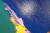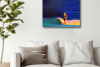 The painting «On the wave» by Sofia is a vivid manifesto of energy and harmony with the ocean. The canvas instantly captures attention with the contrast between the deep, bottomless blue of the water and the radiant, almost neon light illuminating the figure of the surfer.