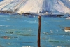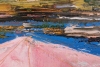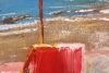 Художница использует смелую, почти осязаемую пастозную технику, благодаря которой море кажется живым и подвижным, а песок — горячим под полуденным солнцем. Глубокий синий цвет воды эффектно контрастирует с тёплыми красными акцентами шезлонгов и нежным розовым оттенком зонта. В этом лаконичном сюжете София мастерски передаёт саму суть отпуска: время, которое замедляется, и удовольствие от созерцания бескрайней морской дали.