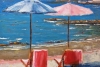 Картина «Отпуск у моря» художницы Софии — это квинтэссенция летнего отдыха, воплощённая в ярких красках и фактурных мазках. Два шезлонга под разноцветными зонтиками на пустынном пляже создают атмосферу уединения и покоя, словно приглашая зрителя занять свободное место и забыть о суете.