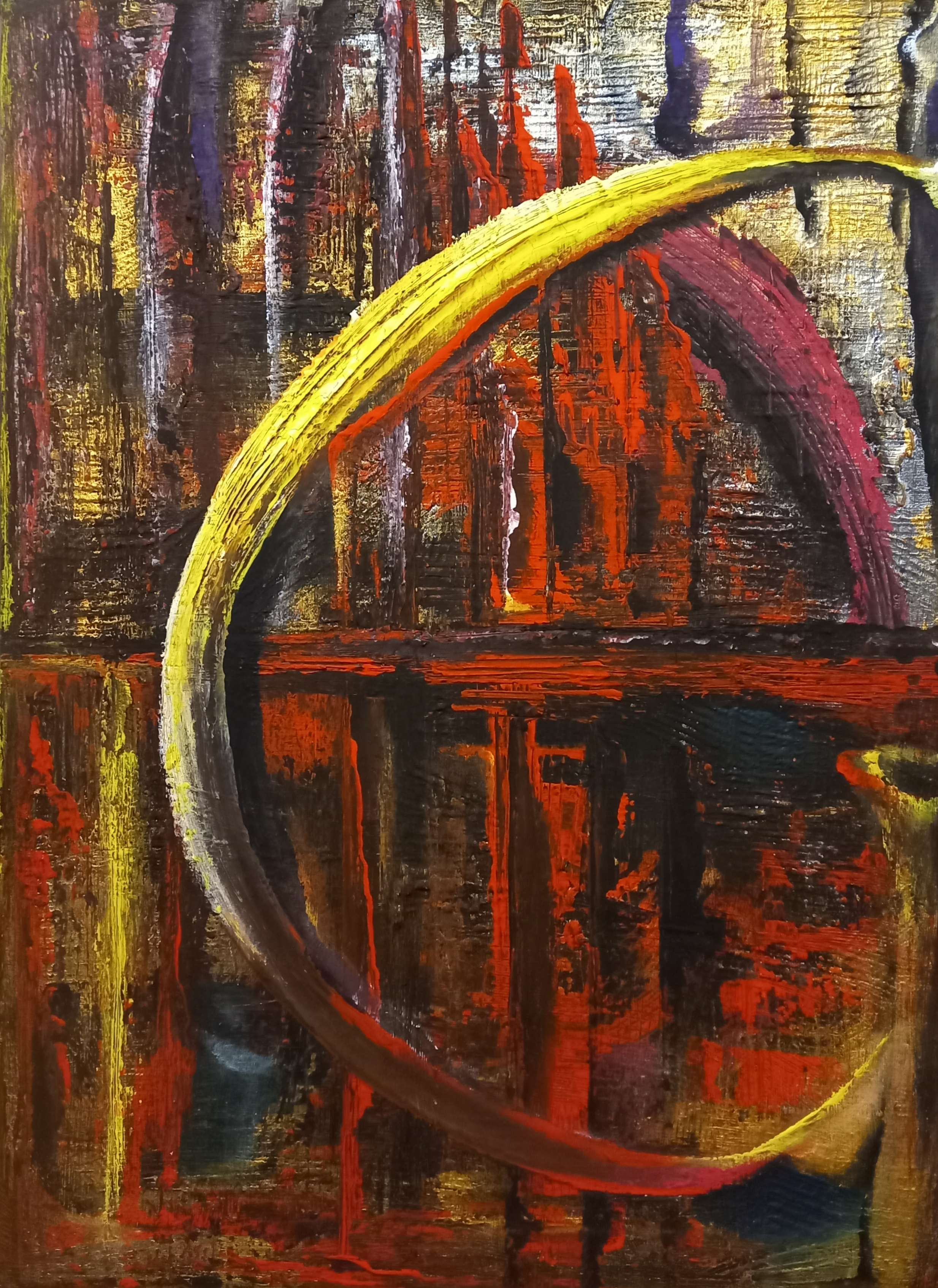 The painting is made on linen canvas. On the front side is a signature, on the back side is the title, year of creation, technique, and size.