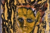 The painting is made on canvas. On the front side is a signature, on the back side is the title, year of creation, technique, and size.