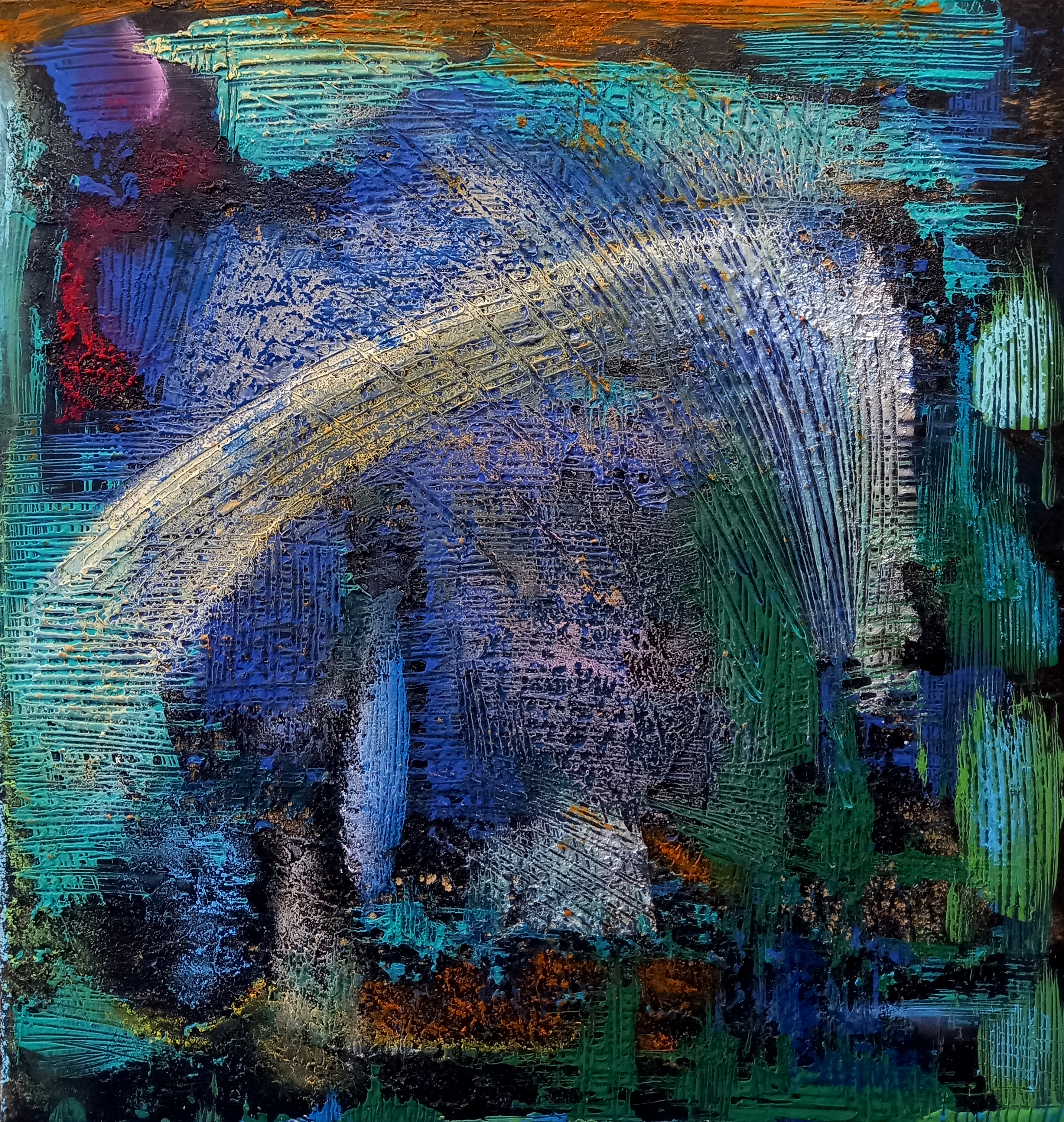 Картина выполнена на листе фиброборда с прикрепленной подрамкой. На обратной стороне указаны подпись, название картины, год создания, техника и размер.