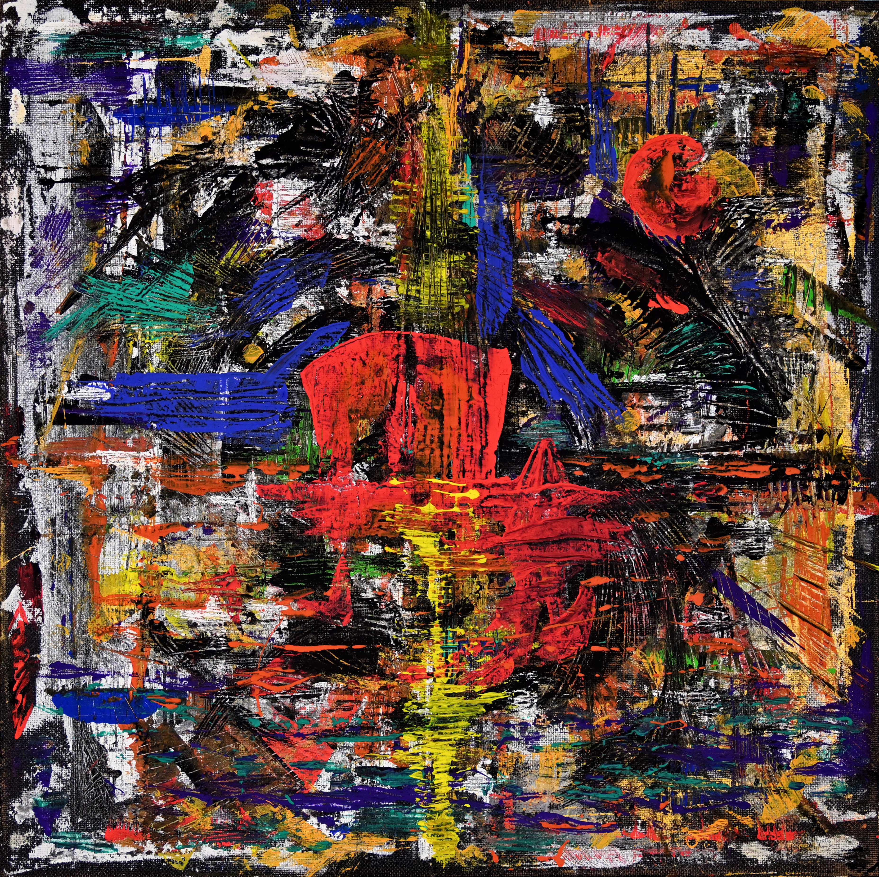 Картина выполнена на листе из фиброволокна. Подпись на лицевой стороне, название, дата, техника, размер — на обратной стороне.